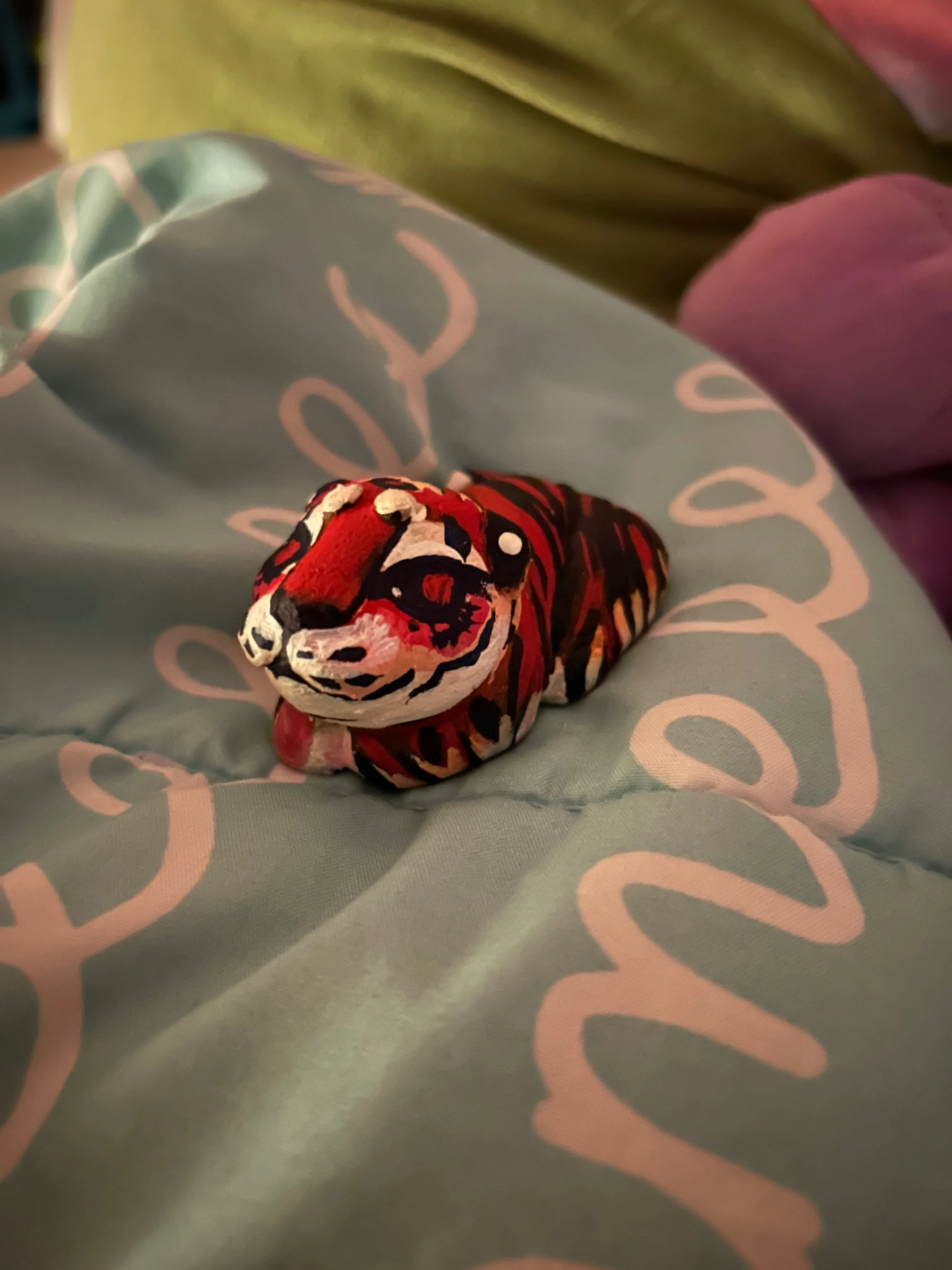 I am a multi media artist, sometimes I’m sewing, sometimes I’m drawing, and sometimes I’m sculpting. This is my most recent piece, she is a bengal tiger, her name being a reference to life of pi’s bengal tiger Richard Parker. She makes me feel peace, she is content with comfort but she still looks for things other people won’t see.
