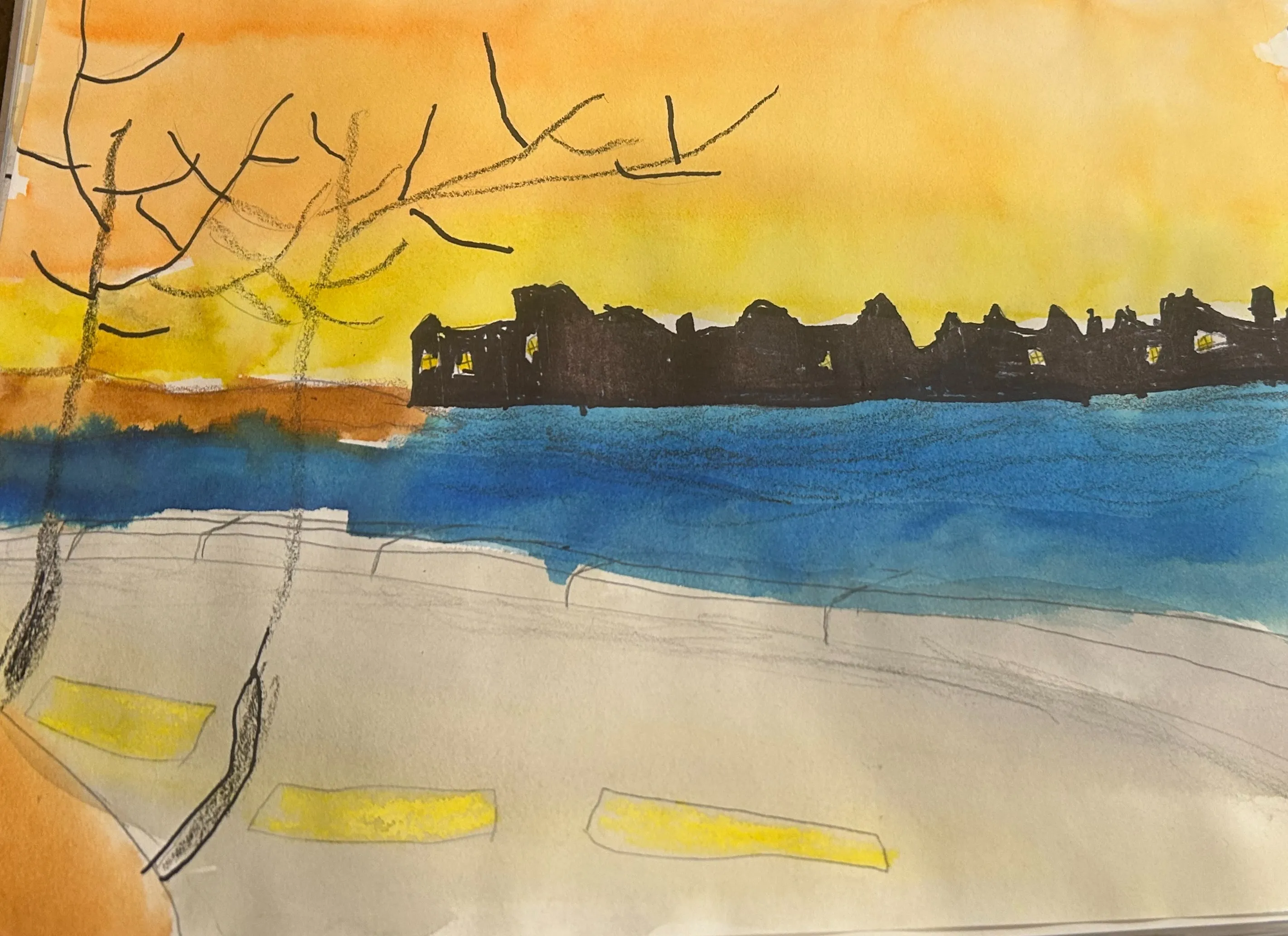 As a 15-year-old homeschooler drawn to watercolor, I enjoy transforming ordinary subjects into expressive works of art. This mixed-media rendition of an old streetlight reflects my fascination with light, mood, and the quiet beauty found in everyday scenes.