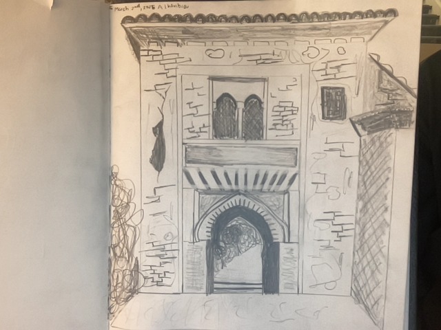 Ms. Amy inspires us to draw landmarks from all over the world. This week we sketched the Alhambra gateway in Spain, in under 40 minutes. She teaches us techniques to be efficient and draw in our own style. This is my favorite after-school activity. I look forward to it every week!