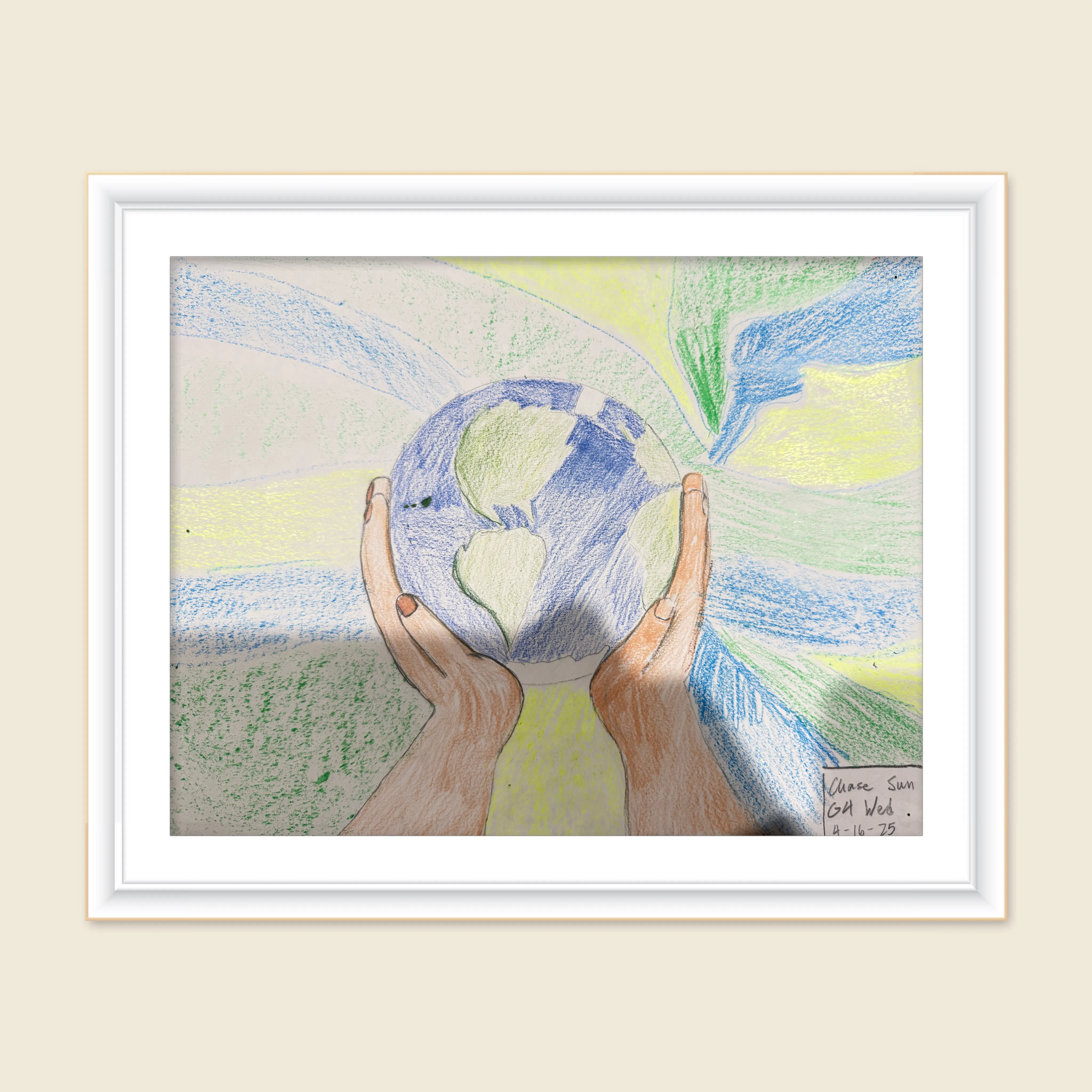 I am a student who enjoys drawing and expressing my feelings through art. This artwork shows a child holding the Earth, which represents my hope for world peace. I was inspired by the idea that even small hands can protect our planet. Creating this piece makes me feel calm and hopeful, and it reminds me to care for others and the world we share.