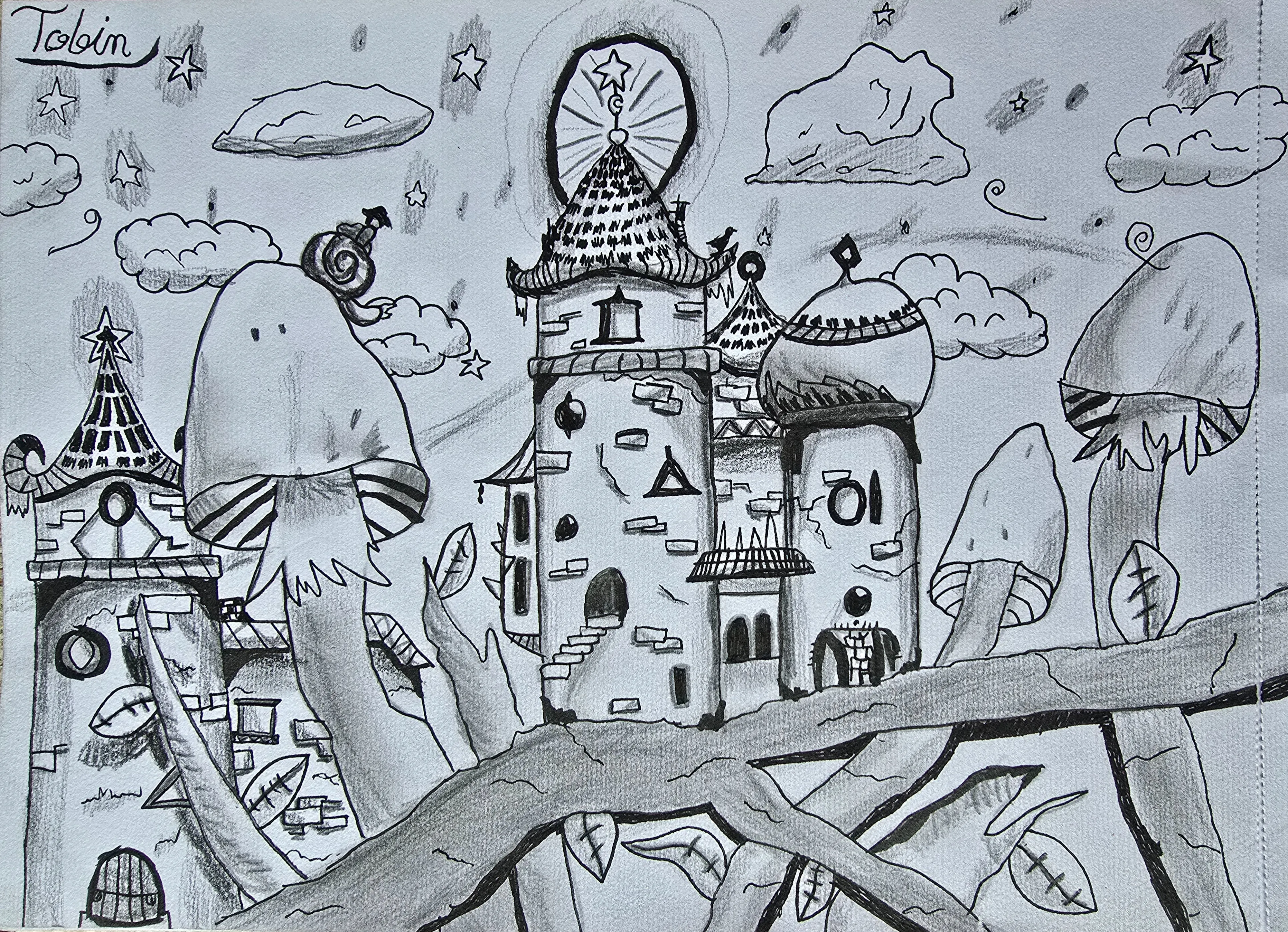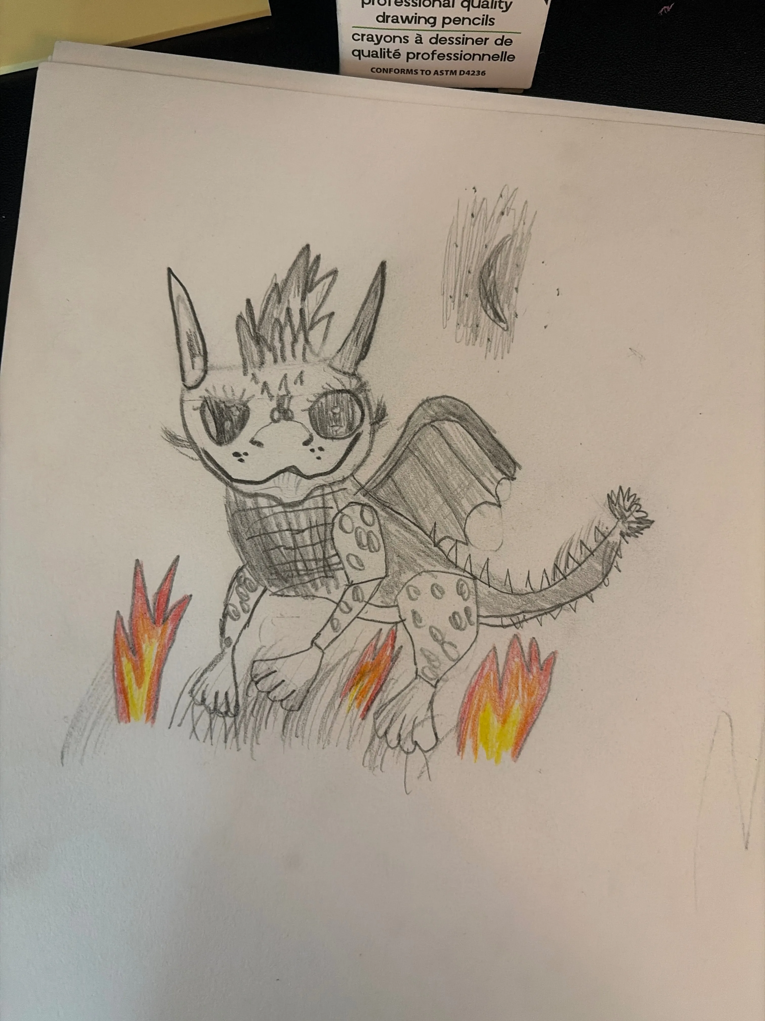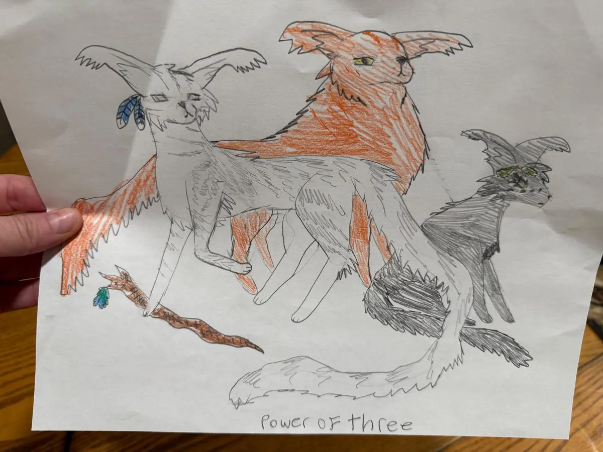 "I am an 11 year old boy who loves to read, write, take care of my pets and have countless opportunities of fun. I drew this because it makes me feel happy, so calm, and so at home." These are Dylan's words. As his mama, I delight in witnessing his weekly commitment to private art classes on Outschool since February, 2024. He has grown so much in his art skills since the beginning of his Outschool art journey. He was inspired to draw this piece while taking a paleontology classon Outschool!