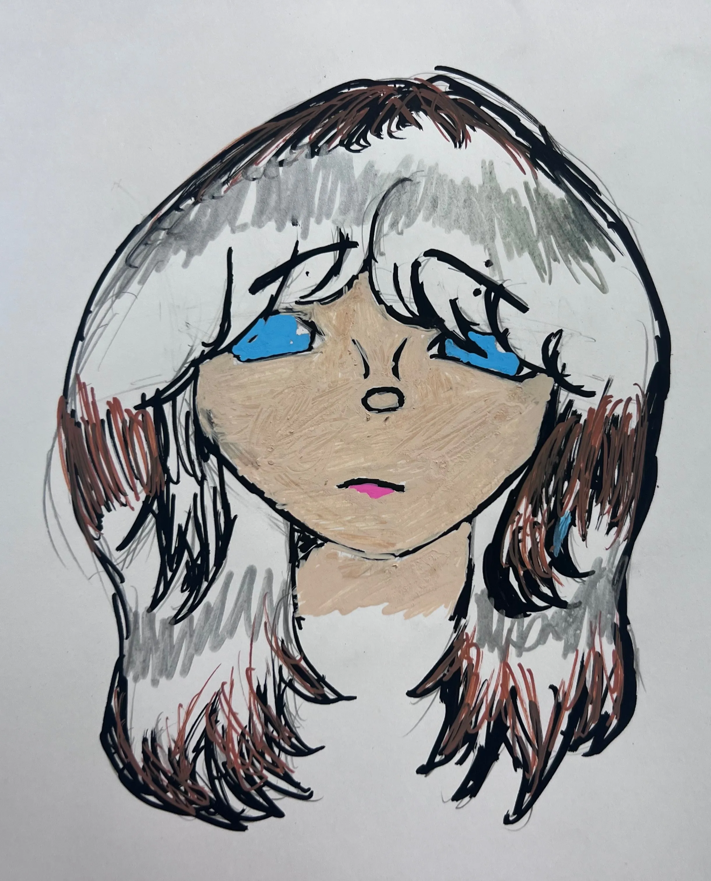 My name is Sercie and I love drawing people and their expressions. I have five siblings (three biological), so I’m always surrounded by different personalities that inspire my art. This piece is inspired by a homeschooled Olympian and the quiet strength it takes to follow your own path. I created it with markers and pen, focusing on emotion in the eyes and face. Art is my escape and a way to capture the stories I see in people.