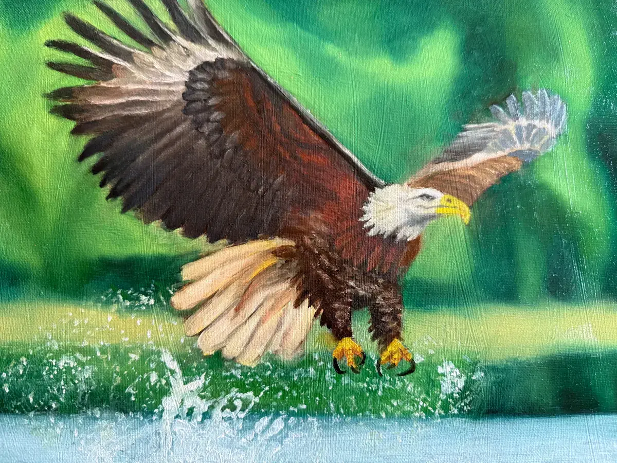 I have been so lucky to find great art teachers on outschool. I always wanted to learn oli painting and I found the best teacher on outschool. I made this piece for my grandfather because he has eagles that come by a pond near his house. I love painting because when I paint nothing else exists. The only thing that matters is the painting. I never worry about other stuff I just get lost in creating.