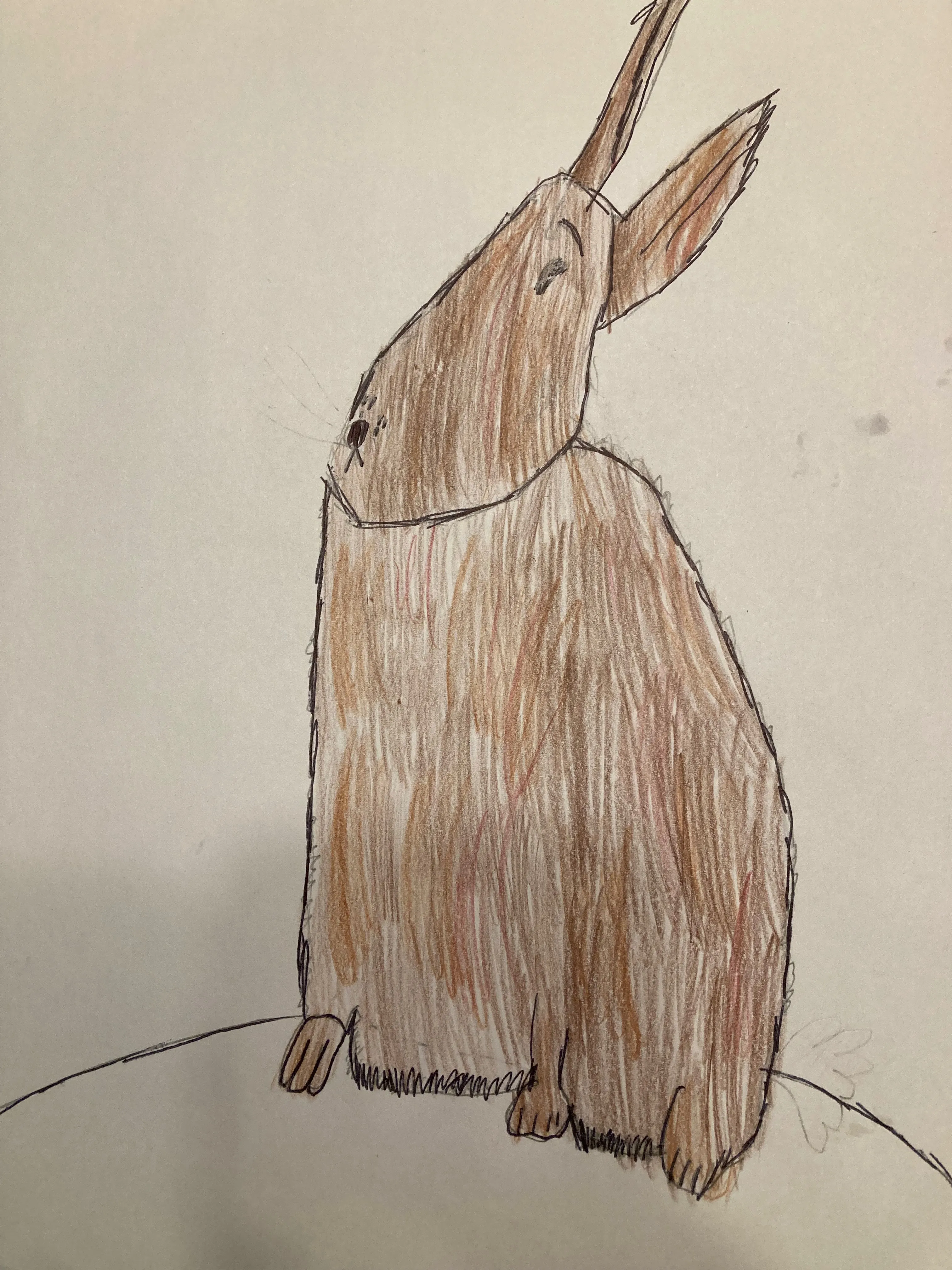 I have a pet named Mr. Sweetie. I was inspired to make this artwork because I want to be an artist when I grow up. I took a class on Outschool called “How to Paint a Rainbow Dream Cat.” I was painting a lot of rainbow dream cats, and I eventually decided I wanted to draw a lot of animals and I chose a bunny for this project. This drawing makes me feel good.