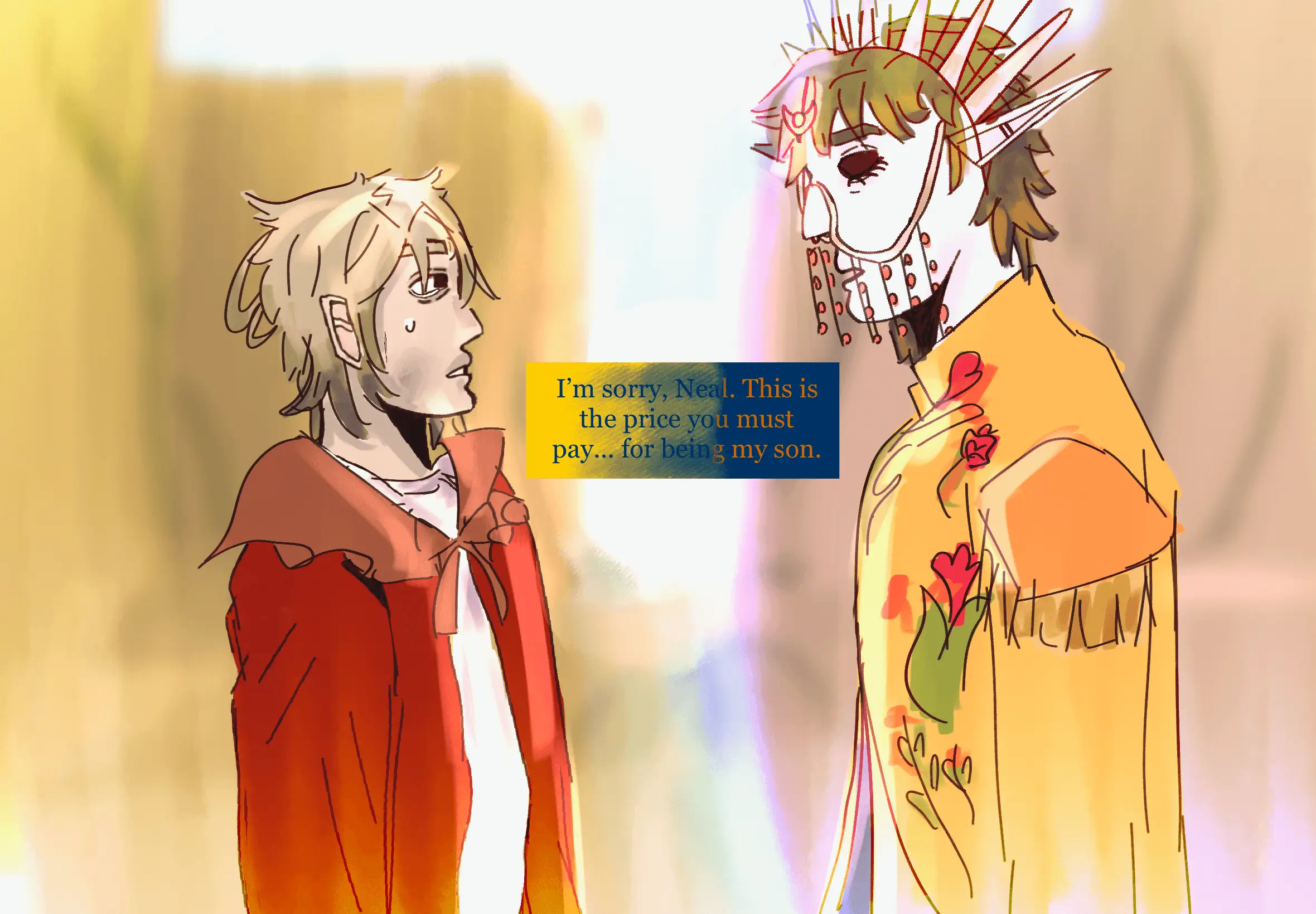 I came up with this piece on my own. I saw him in my head and I knew how I wanted Kai to look. I created him for an online role playing class. I drew him with one of his antlers broken because when I first introduced Kai he had run into a wall out of confusion. I call this piece “Liquid Prayers” because words cannot always relay how you feel, and sometimes you just got to let the tears fall and let people see that you feel. When I look at kai in this piece I feel like giving him a big hug.