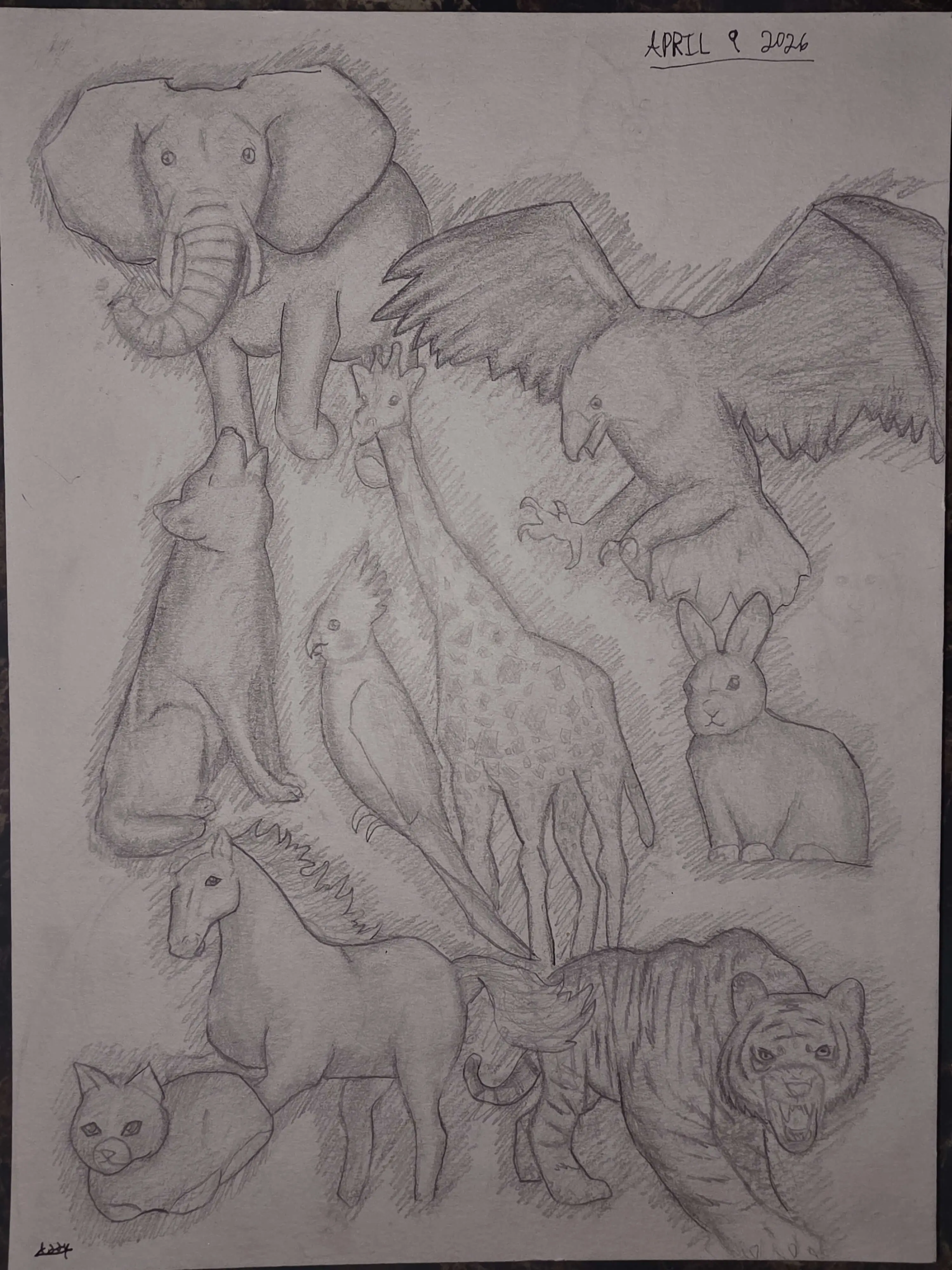 Hi, my name is Addy! I have been taking drawing classes at Outschool for about a year now. I love to see my progress as the months go by. I was inspired to draw this piece because I enjoy drawing animals. Animals can involve a lot of motion and it helps me practice the techniques I have learned.