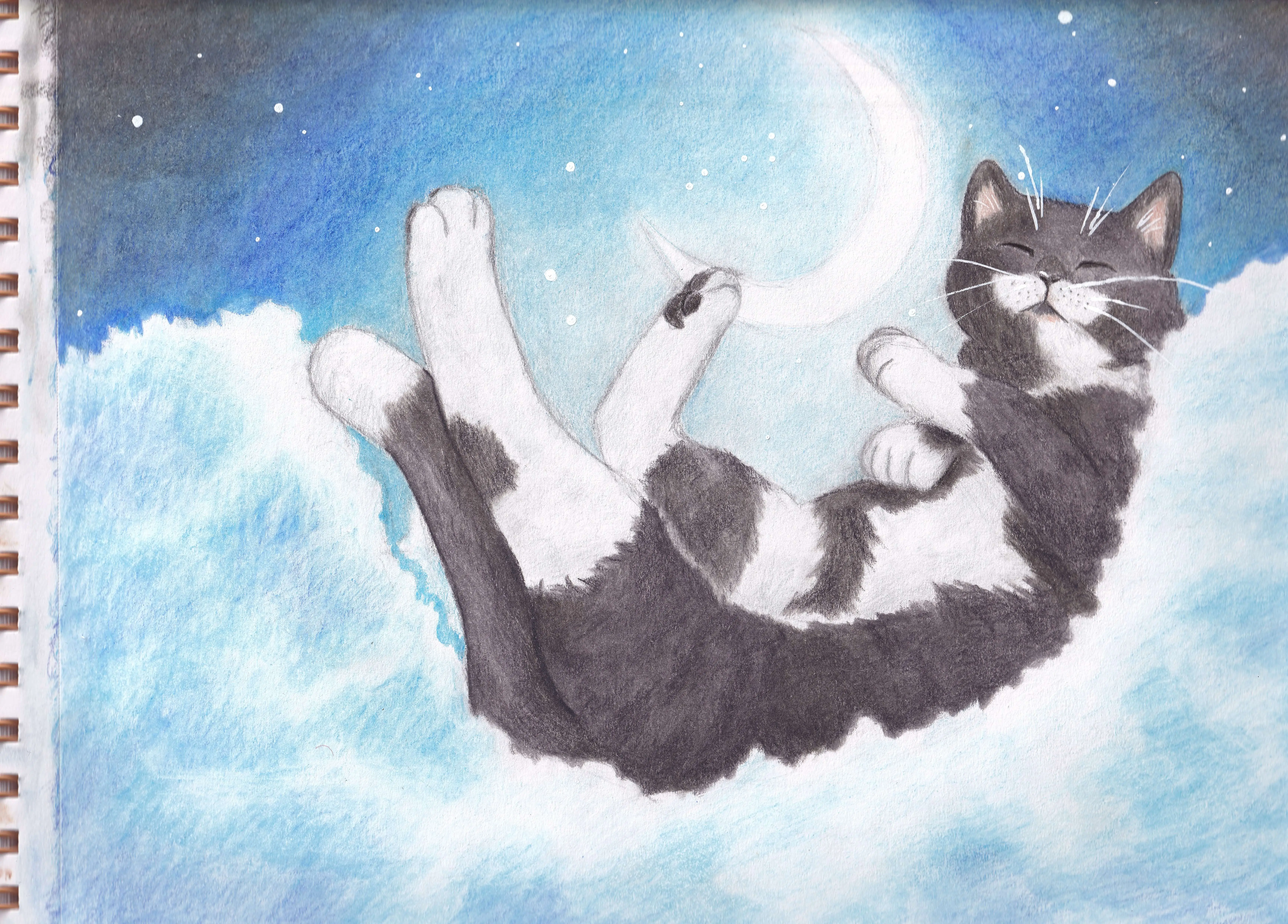 The piece that I’m submitting is called Blissful Dreaming, and the subject is my cat Pierre! The art tools that I used were Prismacolor colored pencils, a white POSCA marker, and a color pencil blender. My cat, Pierre inspires me to take it slow, and relax when things get stressful. Hence why I put him in clouds, sleeping. Some challenges that I faced/trying something new were drawing the clouds, and using the POSCA marker for the whiskers and stars. Hope you like it!