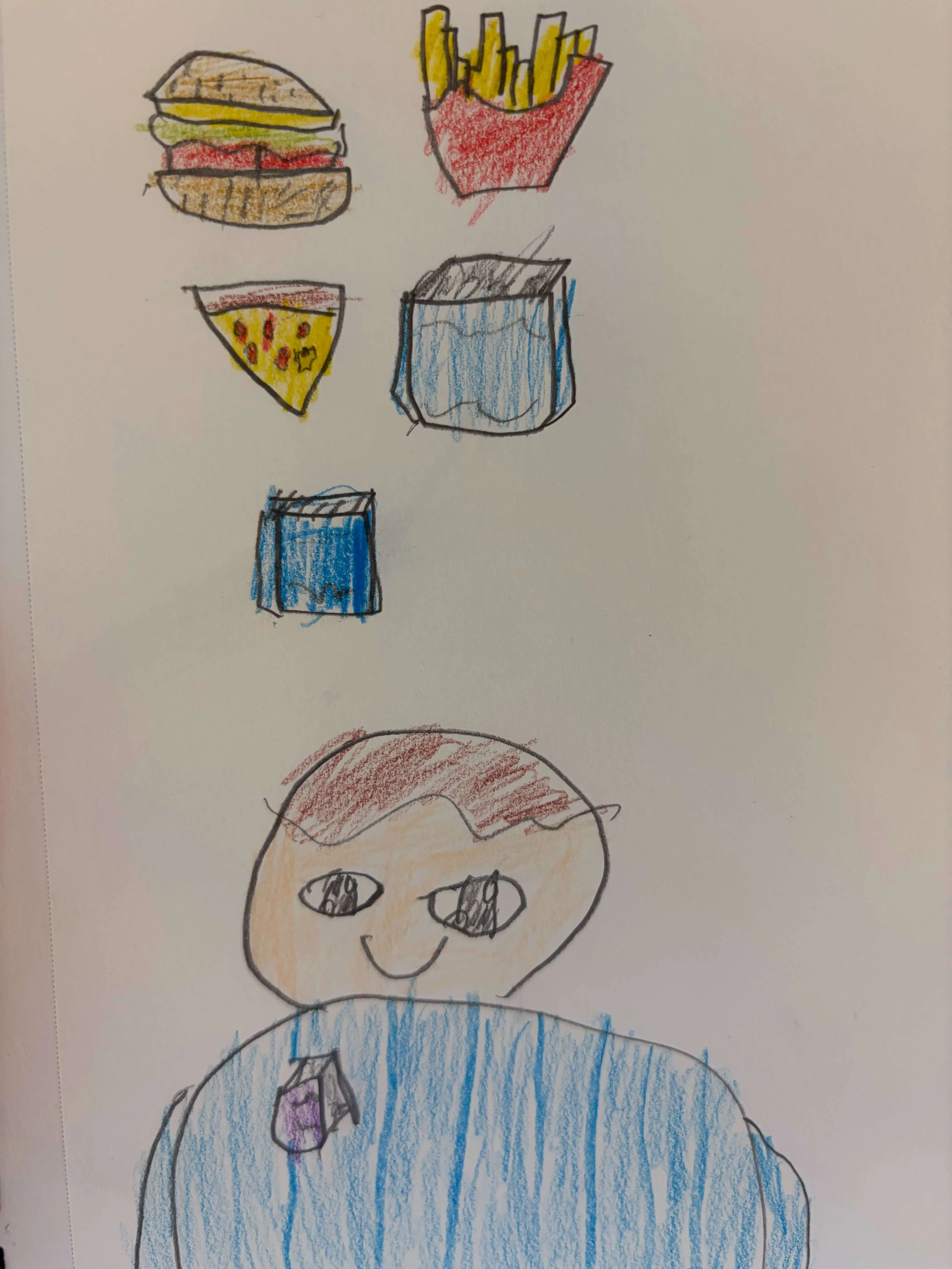 My name is Allen, and what inspires me is what my art piece is called - books and food. Food inspires me to try other foods when I grow up and books inspire me to become an author and read the longest book in the world. This art piece goes out to my art teacher, Mr. Christache!