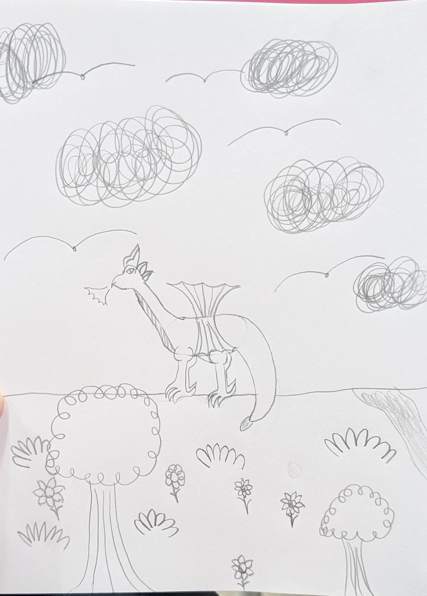"I am an 11 year old boy who loves to read, write, take care of my pets and have countless opportunities of fun. I drew this because it makes me feel happy, so calm, and so at home." These are Dylan's words. As his mama, I delight in witnessing his weekly commitment to private art classes on Outschool since February, 2024. He has grown so much in his art skills since the beginning of his Outschool art journey. He was inspired to draw this piece while taking a paleontology classon Outschool!
